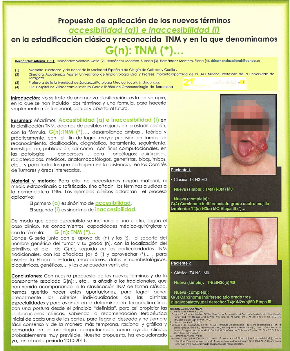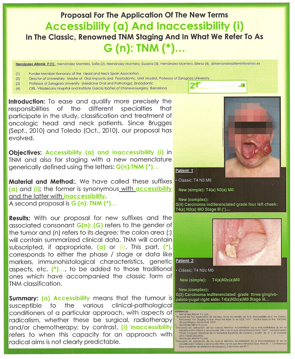 – Proposal For The Application Of The New Terms accesibility (a) And inaccesibility (i) In The classic, Renowned TNM Staging And in What We Refer To As G(n): TNM (*)Click on the title to see the poster and / or communication